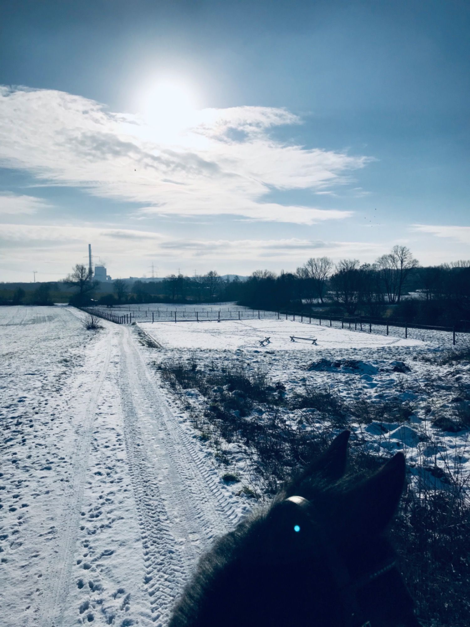 Unsere Pferde stehen 24 Stunden am Tag draußen mit einer großen befestigten und überdachten Fläche, einem ganzjährig bereitbaren Reitplatz und einem schönen großen Stallgebäude zum vorbereiten fürs Reiten.